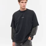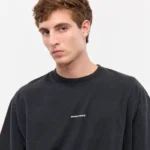 Remera manga corta de cuello redondo y calce oversize en jersey de algodón pesado. Detalle de cuello en complemento ancho, pisado. Logo estampado a contratono en delantero.